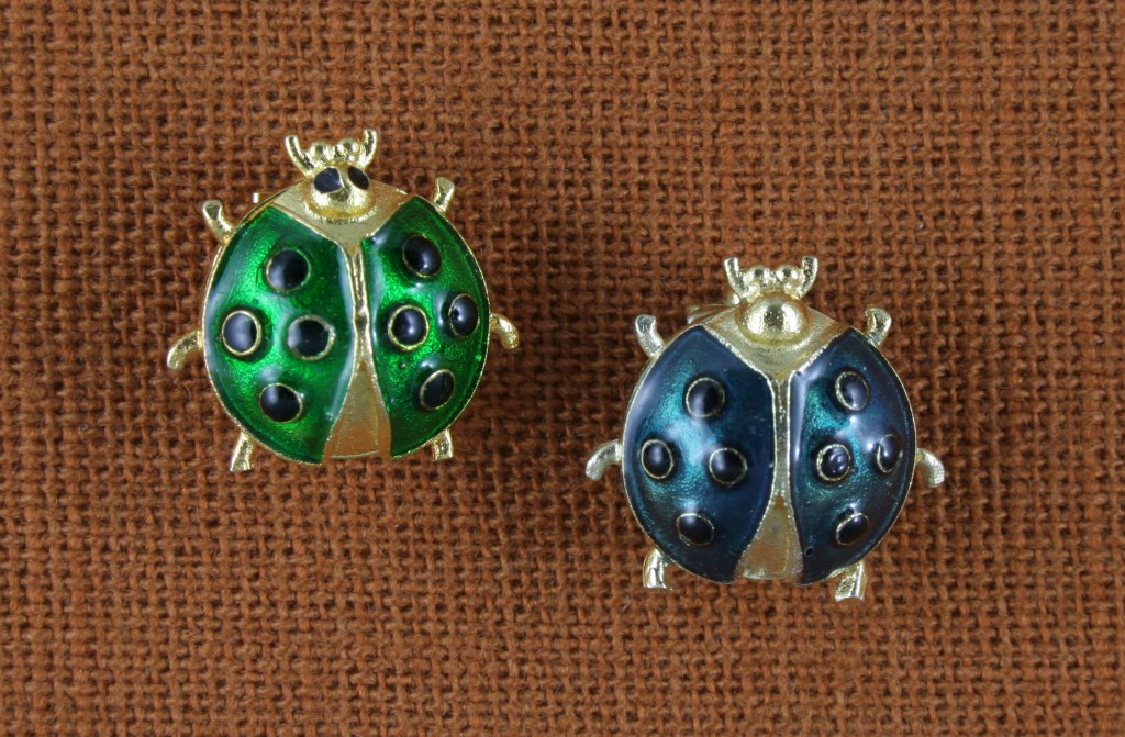 Spilla in argento a forma di coccinella smaltata a mano in filigrana dorata, munita di spillone. Lavorazione artigianale ligure, le coccinelle portafortuna misurano di diametro circa 1,5 / 2 cm. Disponibili oltre nei colori blu o verde come si vede nella foto, nel classico rosso oppure tutta dorata o rodiata.